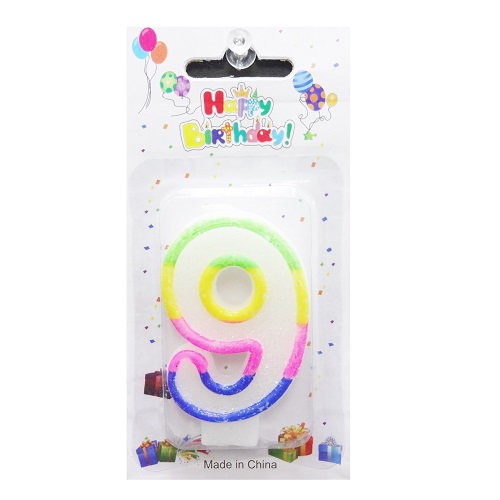 Birthday Candles #9 Rainbow, wholesale, bulk – Unit per pack 12