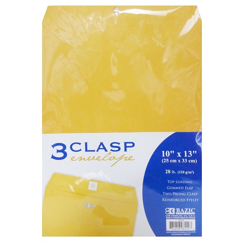 Clasp Envelopes 3ct 10X13 Yellow, wholesale, bulk – Unit per pack 48