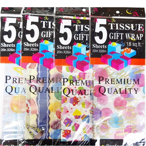 Tissue Paper 5ct Birthday Asst, wholesale, bulk – Unit per pack 12